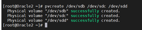 pvcreate /dev/sdb /dev/sdc /dev/sdd