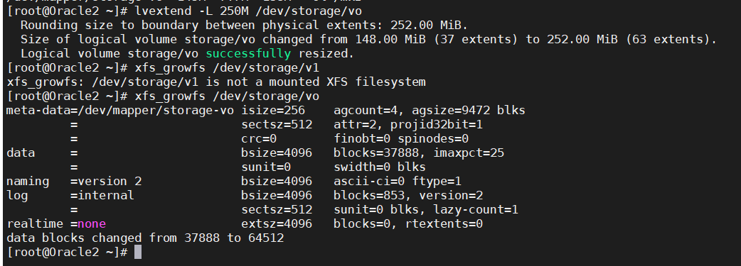 5.lvextend -L 250M /dev/storage 扩容逻辑卷vo