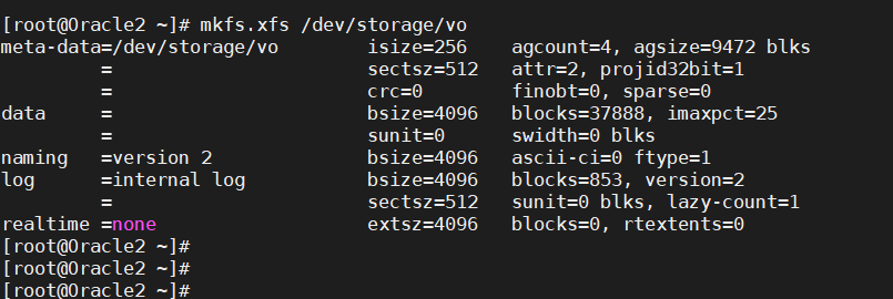 3.mkfs.xfs /dev/storage/vo 将vo格式化