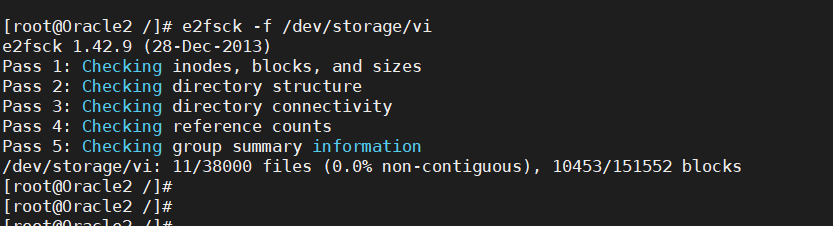 3.e2fsck -f /dev/storage/vi 检查磁盘完整性
