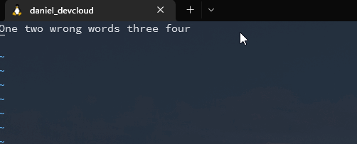 例如我们想快速删除one two wrong words three four中间隔的one two three four