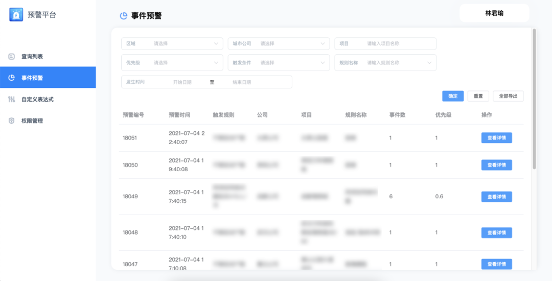 平台中记录了每一条工单被打上的标签结果,预警事件集合,可及时通过条件筛选针对结果进行处理