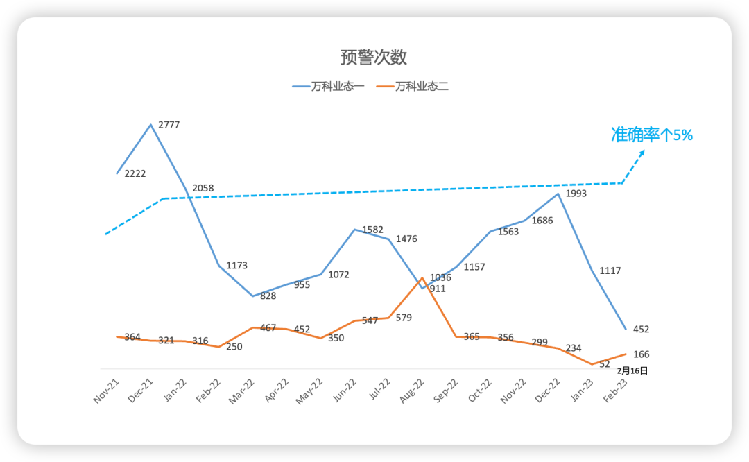 自试用以来万科预警平台共触发预警 3792 次。经对比测试,Azure OpenAI 嵌入万科预警平台后,基于 GPT-3 模型的自定义训练,契合了地产行业的特点,使投诉数据标签准确率相较此前又提升了 5 个百分点,达到业界领先水平。