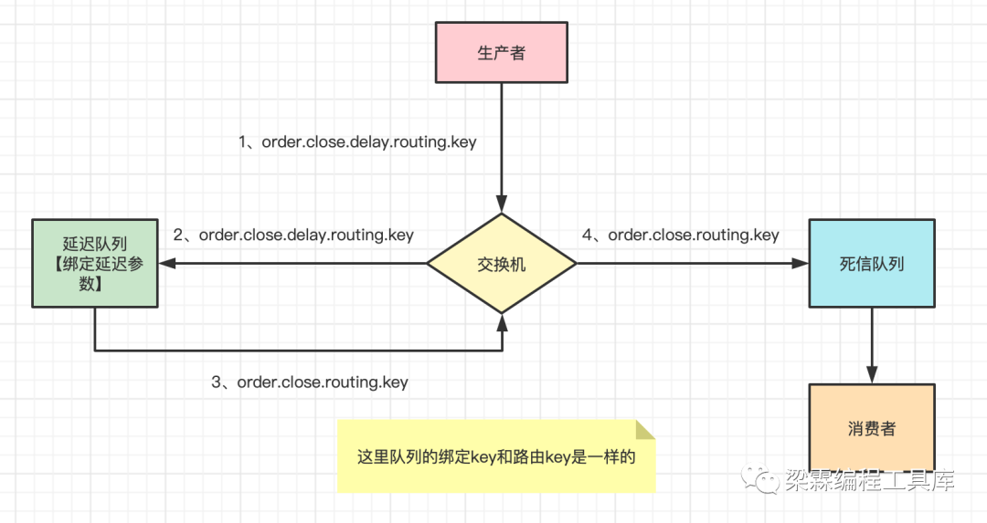 //发送延迟消息,用于自动关单OrderMessage orderMessage = new OrderMessage();orderMessage.setOutTradeNo(orderOutTradeNo);rabbitTemplate.convertAndSend(rabbitMQConfig.getEventExchange(),rabbitMQConfig.getOrderCloseDelayRoutingKey(),orderMessage);