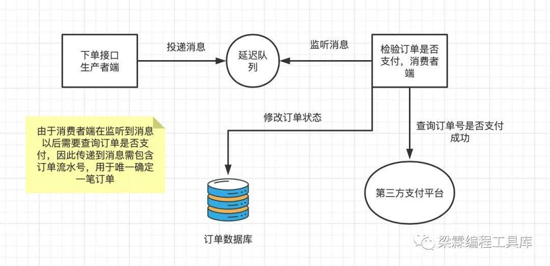 延迟消息中的内容需要包含订单流水号,供消费者去查询订单支付信息