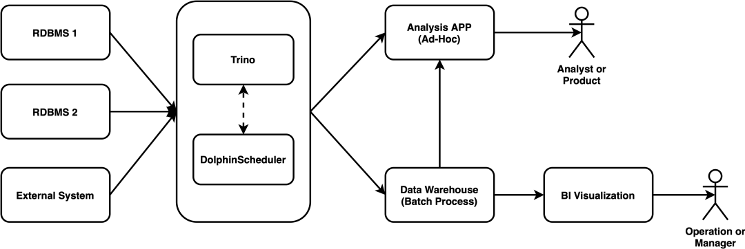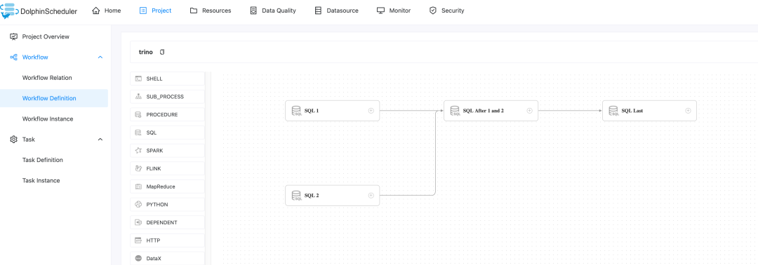 本文中,我们将通过实例,分析 Apache DolphinScheduler 如何与 Trino 结合,满足用户实现 OLAP 业务的需求,同时引入尽可能少的组件,快速实现湖仓一体数据建设。