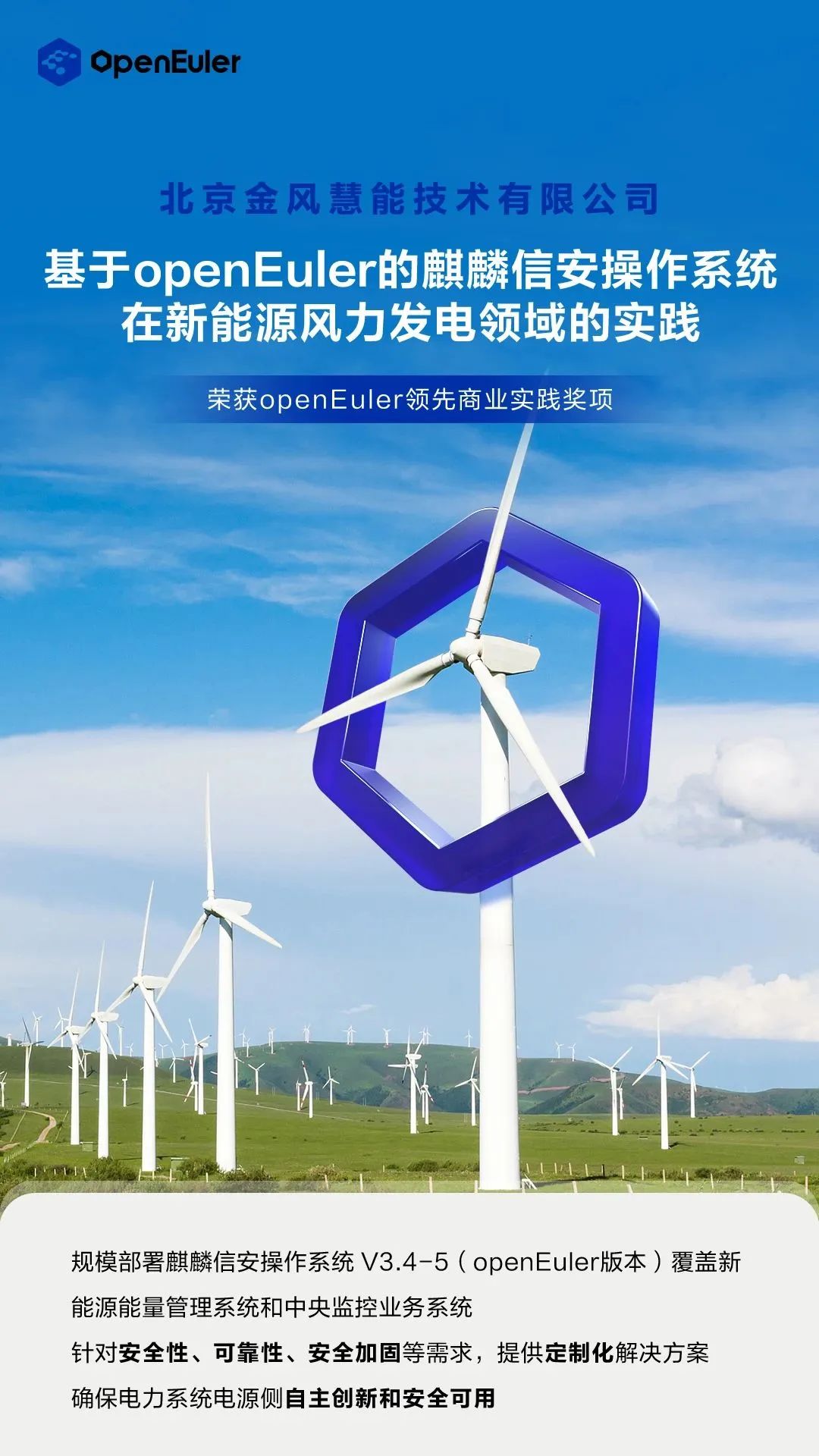 中国风电龙头金风科技旗下全资子公司——北京金风慧能技术有限公司(以下简称“金风慧能”)是新能源后市场服务完整解决方案提供商,其所建设的 SOAM 智慧运营系统,管理着全球超过 120GW 新能源资产。金风通过调研测试,选择麒麟信安成为其自主创新操作系统采购的首选供应商。