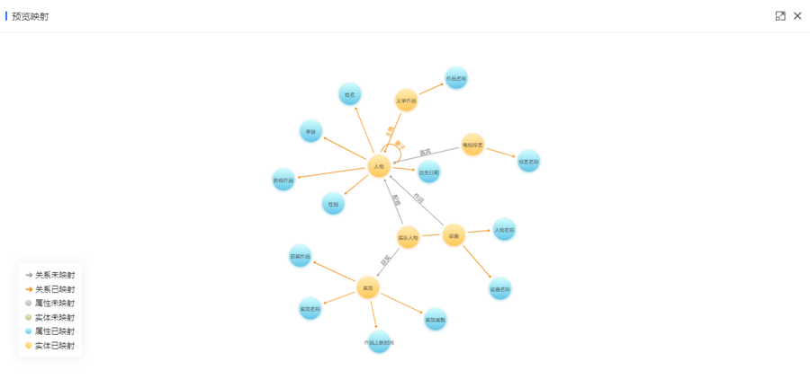 若还没设计schema的项目将会进行提示,若已经做好映射的schema将会展示实体、关系、属性的映射情况,如下图所示: