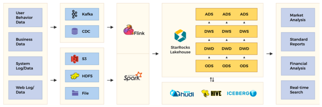 目前,易点天下累计服务客户超过5000家,其中包括华为、阿里巴巴、腾讯、网易、字节跳动、百度、快手、爱奇艺、SHEIN、Lazada 等知名企业。易点天下始终秉持"科技使世界变得更平"的企业使命,积极采用大数据和人工智能技术来落地和推动业务的发展。随着公司业务的扩展,我们的数据分析工作遇到了一些痛点:1. 数据处理需求日益增多:每天需要处理几十T 、近千亿的数据量。2. 数据分析的复杂度提高:如用户留存、 LTV 这一类的复杂指标,往往需要多表关联查询和实时查询,目前应用的组件不能满足业务的查询需求。3. 技术组件较多:公司有多个数据分析平台,采用的技术组件也非常多,包括 ClickHouse、Kafka、Flink、Spark、Hive 等,运营维护成本较高。4. 当前架构基本以离线为主,实时数据处理架构薄弱。经过现状分析后,我们开始设计数据仓库的标准化规范,并寻找一款集实时离线为一体的数仓统一解决方案,对数仓进行统一规划和建设。—