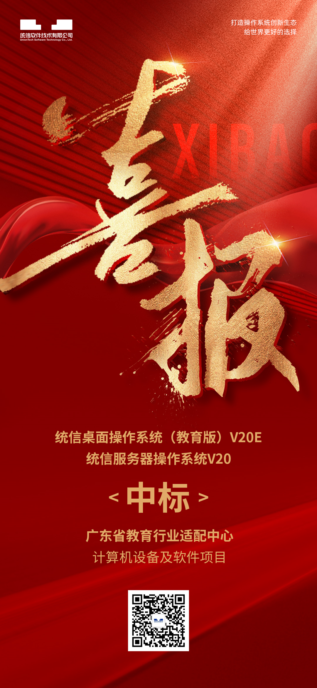 近日,统信软件参与“广东省教育行业适配中心采购项目”竞标,凭借优异的产品性能以及强大的软硬件生态体系,统信桌面操作系统(教育版)V20E、统信服务器操作系统V20获得客户高度认可,成功中标!