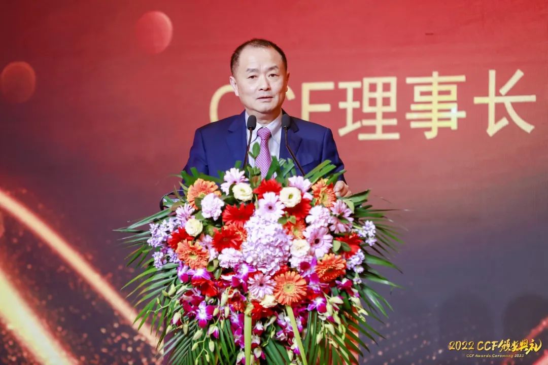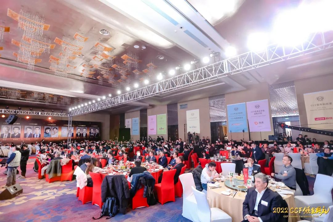 本届CCF获奖者和现场400多位计算机领域的特邀嘉宾齐聚一堂,共同出席了这场盛典活动。CCF理事长梅宏教授在典礼致辞上说:“今天我想说的是四句话。第一句话是欢迎。欢迎所有来参加颁奖典礼的嘉宾以及获奖者。今天的颁奖典礼,是继去年8月份在苏州举行CCF创建60周年庆典之后又一次盛大的活动。去年年底的CNCC不得已改为了全线上模式,所以今天的聚会弥足珍贵。第二句话是恭贺新春。俗话说‘不出正月都是年’,用今年的新春颁发去年的奖项,让今年新春具有了特殊寓意,寓意着我们将彻底走出疫情,摆脱阴霾。第三句话是祝贺,祝贺每一位获奖者及项目成果,你们实至名归,各位的成就合起来,铸就了CCF的荣光。第四句话是感谢。感谢廖湘科教授领衔的CCF奖励委员会、各分委员会以及评委,是你们的认真付出选出了今天名副其实的获奖人及获奖成果。”CCF奖励委员会主席廖湘科教授在致辞中提到,表彰优秀,让更多的同仁为计算技术的发展和应用、为CCF的发展作出贡献,是学术组织的重要职能。CCF奖励一直坚持按照国际规范评奖,坚持实行推荐制,奖项的公信力和影响力得到了提升,CCF的奖项也正在逐步走向国际,提升了国际影响力。他向所有获奖人表示祝贺,也感谢了评奖分委员会的成员及各位推荐人,同时呼吁更多的同仁支持CCF的奖励工作,发掘并积极推荐优秀的奖项候选人和项目,为CCF更好地发展贡献自己的力量。