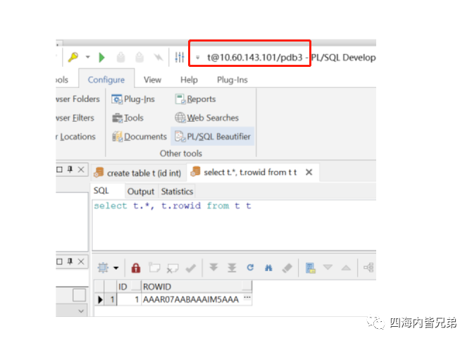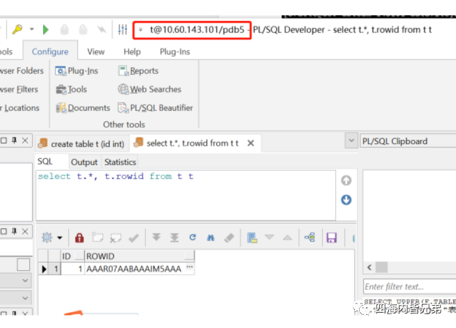 t用户在PDB3这个数据库上有一个T表。假设有一条数据(实验)