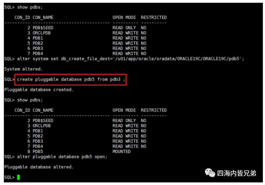 SQL>alter system set db_create_file_dest='/u01/app/oracle/oradata/ORACLE19C/ORACLE19C/pdb5';