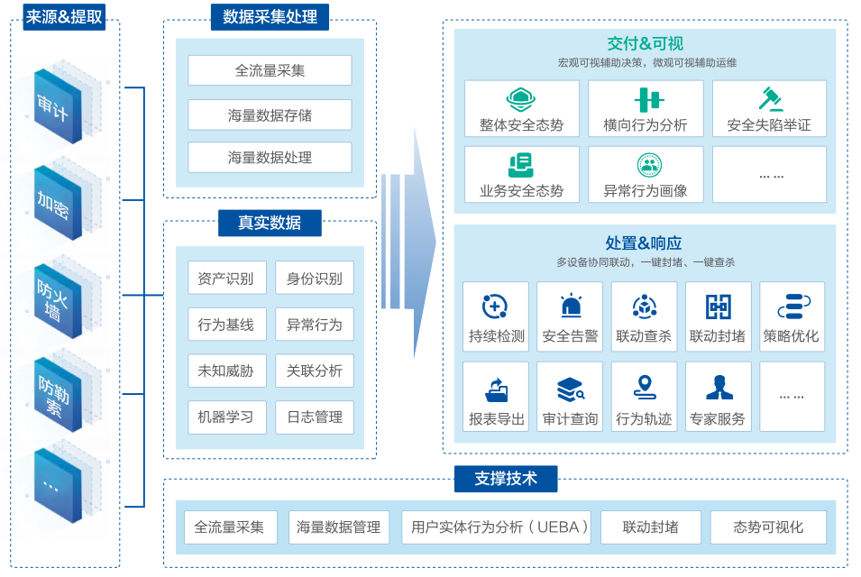 采用同品牌数据安全产品共同组成核心数据安全防护系统,实现安全设备统一管理,包括安全策略管理、节点状态管理、告警管理、日志管理等,并接受区大数据平台的控制和管理;同时,通过不断完善流程、制度、服务规范,构建可持续数据安全运营体系。