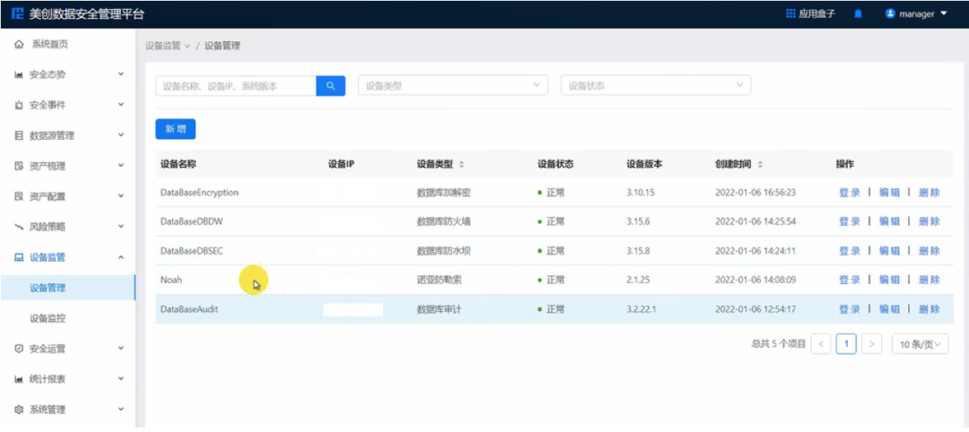美创数据安全管理平台作为联动各孤立安全设备,面向全域数据提供全生命周期安全治理与运营能力的一体化数据安全管理平台,可对资产、身份、风险进行集中式管控,实现数据安全风险的可视、可管、可控、可溯。