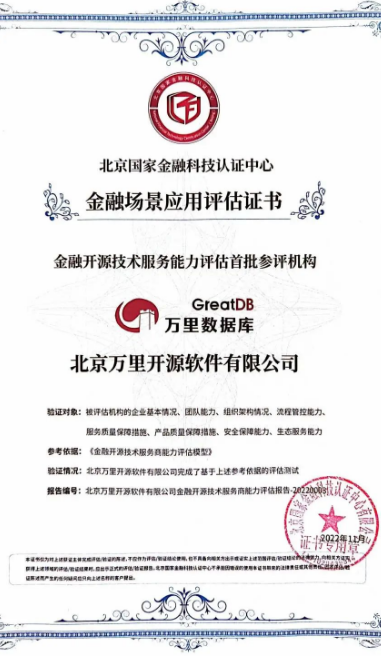 与此同时,万里数据库于2022年11月通过首批金融开源技术服务能力评估,积极响应国家对金融业开源技术应用的政策号召。