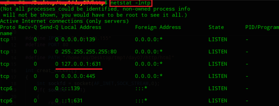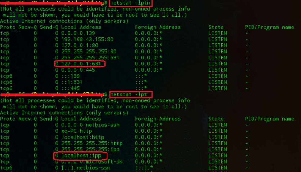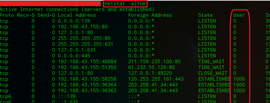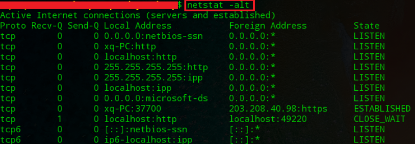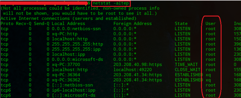 -l 列出所有的监听端口-n 以数字形式显示地址和端口号, 不进行域名的解析,加快信息的显示。-t 列出tcp协议的连接-p 显示占用该端口的进程-a 列出所有当前的连接, tcp, udp 和 unix 协议下所有套接字的所有连接-u 列出udp的连接
