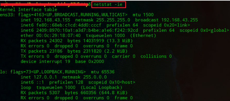 -i 打印出网路接口信息-e与其搭配,可以输出更友好的信息