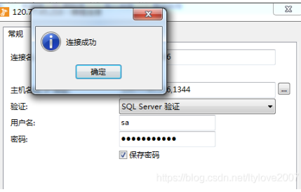 然后重启sqlserver服务,先看服务器上访问成功了,再来尝试客户机笔记本上访问服务器,结果惊喜的发现也成功了。