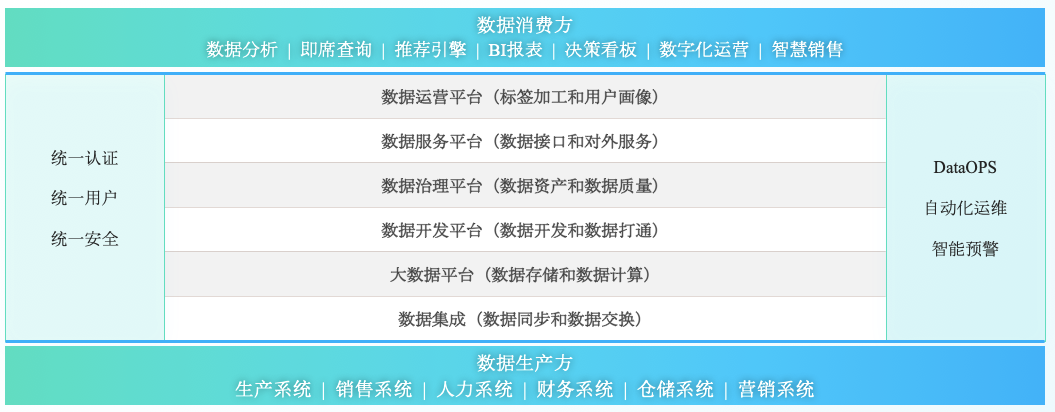 提供大数据汇聚、数仓建模、数据治理、数据服务、数据分析的全生命周期能力,并基于Dataops理念构建数据生产流程,加快数据分析链路,为企业数据治理提供易用、稳定的数据平台,达到降本增效的目的。