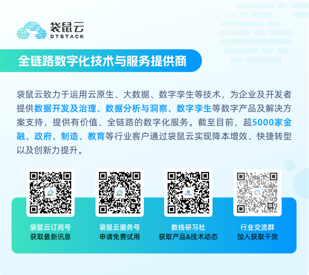 袋鼠云数栈提供一站式大数据开发与治理、数据智能分析与洞察、机器与深度学习建模等产品化应用,涵盖离线开发、实时开发、数据资产、数据服务、指标管理分析、客户数据洞察等平台。