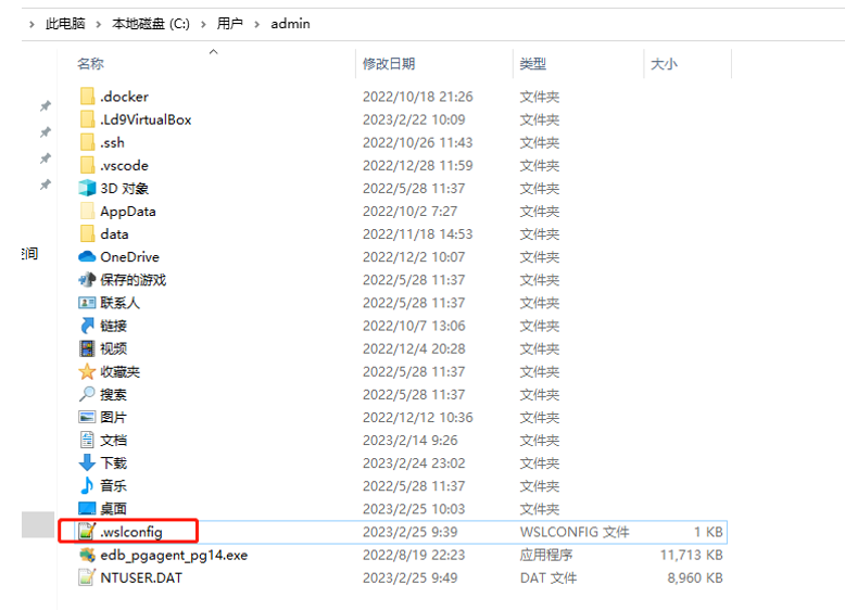 新建文件 .wslconfig ,然后记事本编辑