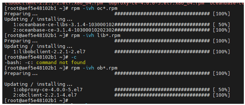 3 . 手动部署一个 OB 单副本集群,包括一个 OBProxy 节点。