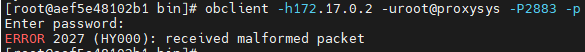 [root@aef5e48102b1 bin]# obclient -h172.17.0.2 -uroot@proxysys -P2883 -p --proxy-mode
