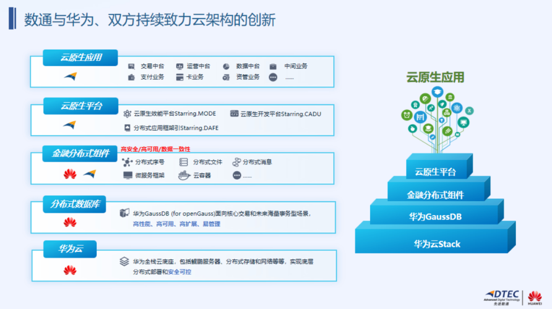 其中,先进数通云原生综合解决方案以自主研发的云原生开发平台Starring搭载华为云Stack,标准化封装应用开发实施中的需求、开发、测试、部署、运维、场景运营及服务治理七大过程,运用云原生技术和信创云底座,有效提速应用交付效率,保证实施质量,降低实施成本,适用于银行中间业务、支付结算、卡业务、渠道管理、企业服务总线等多个领域。