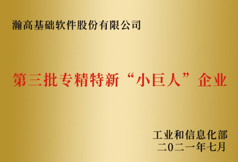 国家工信部专精特新“小巨人”企业称号