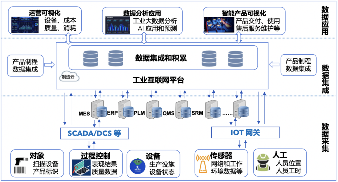 第二,在数据集成层面,智能制造企业通常内部会有众多的管理控制类系统,系统间的关联性较差,容易形成数据孤岛,缺少统一的数据中台底座;