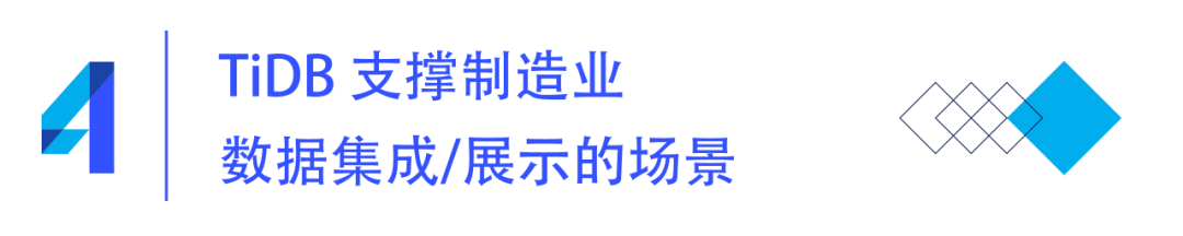 以上我们按照数据分层的结构,分别介绍了 TiDB 在智能制造数据集成、数据集成和应用展示可以支撑的业务场景,下面将通过三个具体用户案例来做进一步的说明。