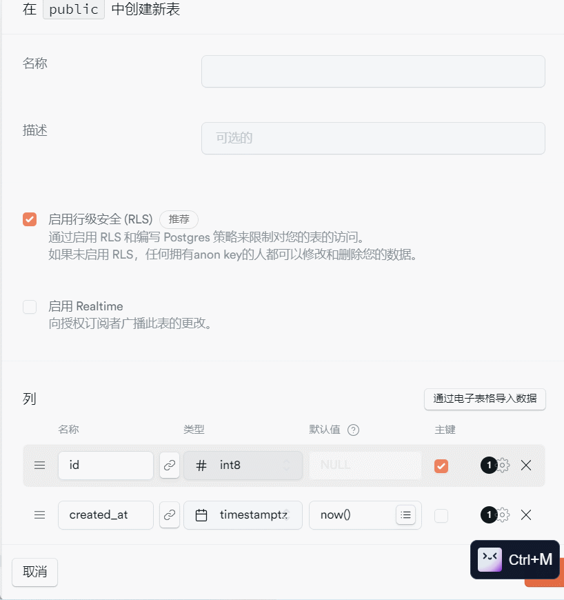 | created_at | timetamptz | 创建时间 |