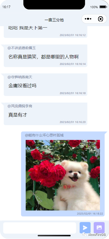 本示例是一个可以实现多人互动的角色扮演聊天室的微信小程序(web版传送门:Web开发示例--多人聊天互动空间),小程序后端服务使用了MemFire Cloud,其中使用到的MemFire Cloud功能包括: