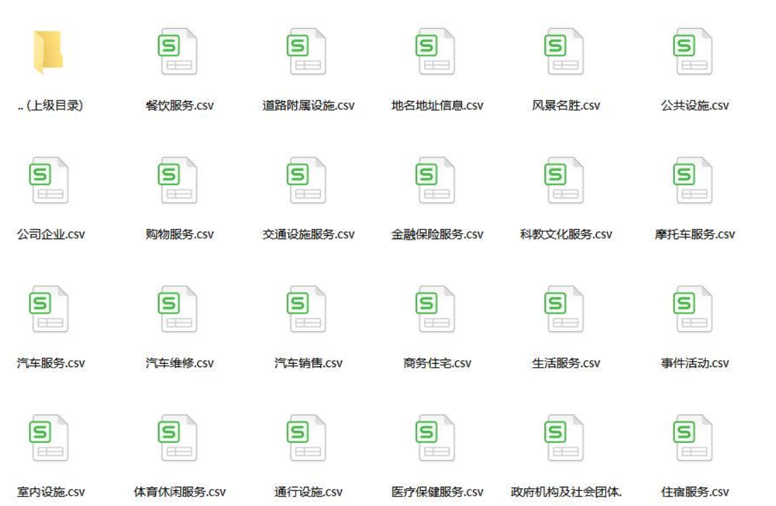 高德地图POI是Point of Interest”的缩写,可以翻译成兴趣点,一共有三级分类(大类、中类、小类),其中一级分类有23个。
