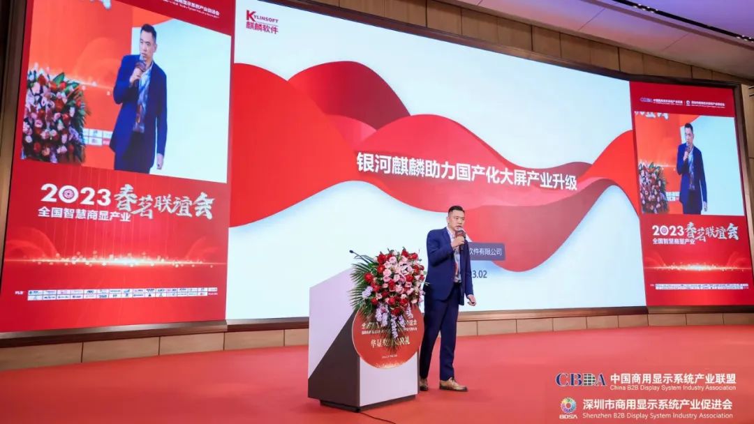 2月25日,2023全国智慧商显产业春茗联谊会暨2023深圳市商用显示系统产业促进会二届三次会员代表大会成功举行。麒麟软件携银河麒麟桌面操作系统(大屏版)V10隆重亮相。