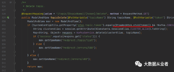 发布版本内置过快速链接跳转到EFAK(即KafkaEagle),前几天某行业局点ISV客户反馈通过EFAK页面删除Topic失败,提示404异常。页面删除Topic需要输入Admin Token,这玩意输入错误的话,应该会提示403(无权限)。再次让客户确认,拍照如图。 Admin Token其实就是个密码,开发者可能认为删除Topic需要特别权限或需要谨慎操作,才进行二次check。微信公众号私信有时效性、过期不可回复,很多朋友私信我没及时看到、未能回复。最近新建钉钉群(44703541),欢迎朋友加入!问题分析