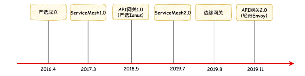 API 网关 1.0:即严选 Ianus 网关,解决了外部对服务访问的流量治理问题,并经受住了多次大促流量的考验;