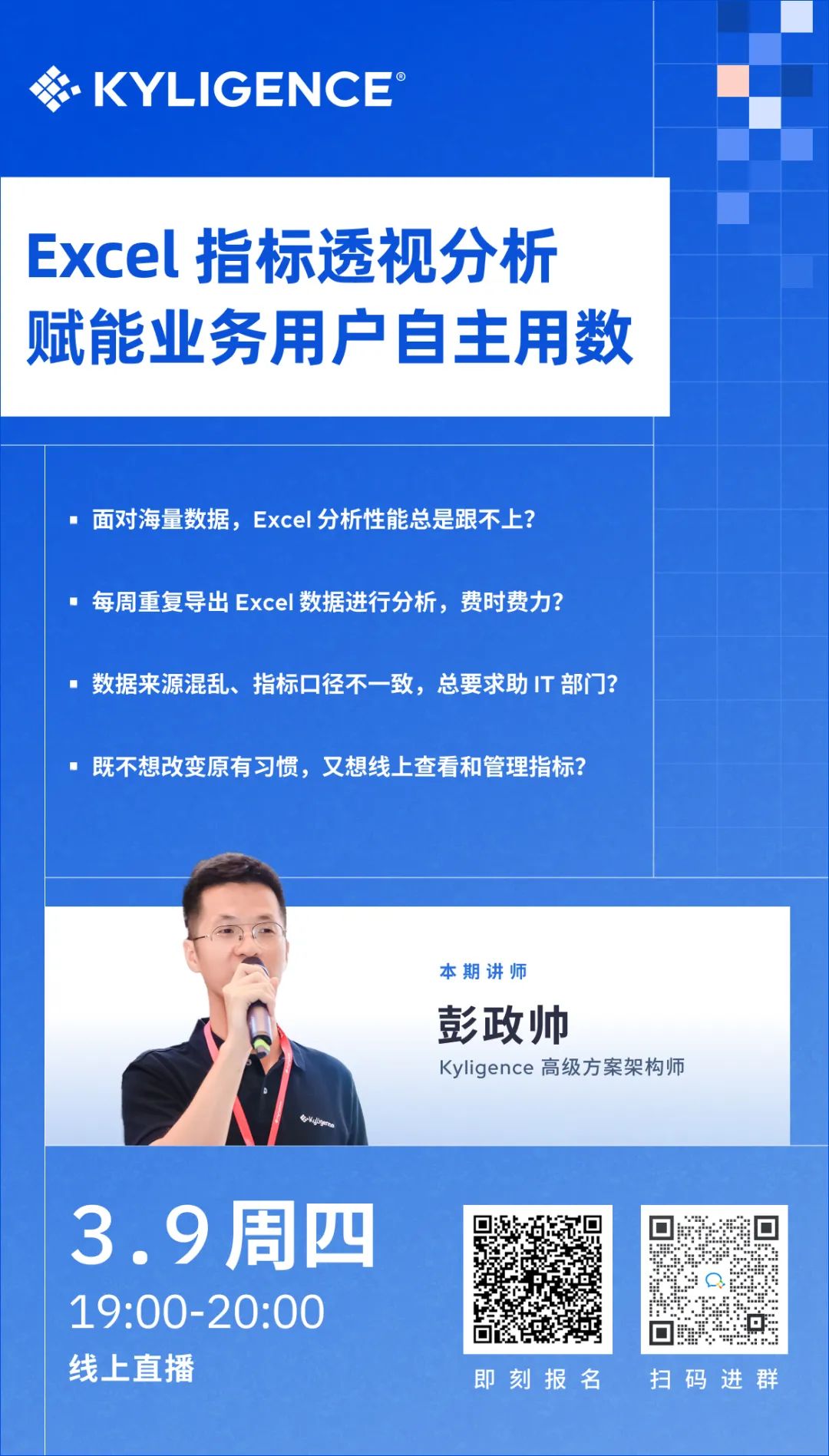 了解更多“Excel 指标透视分析”相关内容,欢迎扫描下方二维码报名3月9日19:00的线上研讨会👇