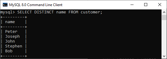 列,则需要 DISTINCT 关键字。执行以下命令将返回具有唯一值的 name