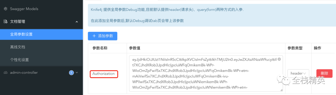 关于测试工具:使用postman或swagger,下面是使用的swagger+knife4j ,在全局参数设置页面,添加 Authorization 参数,其参数的值为 token 串