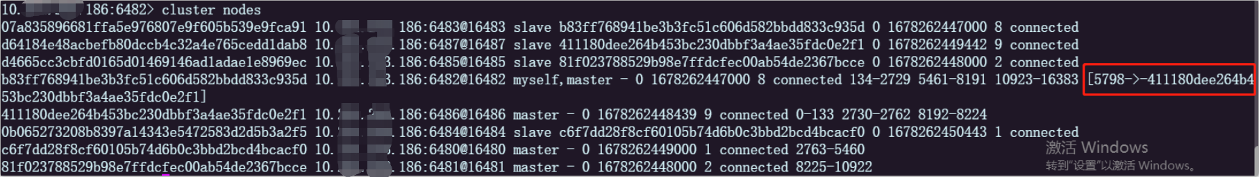 cluster setslot 5798 migrating 411180dee264b453bc230dbbf3a4ae35fdc0e2f1 //该id为6486的id