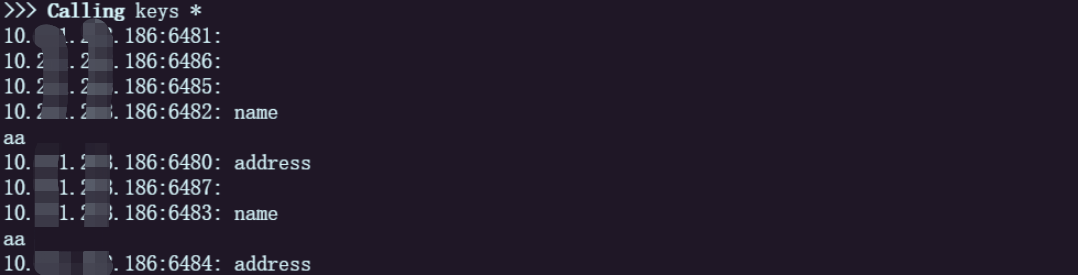 redis-cli -a 123456 -p 6480 -c --cluster call 127.0.0.1:6481 keys \*
