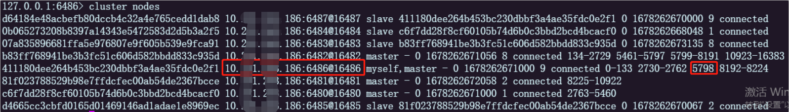name该key在6482中的5798槽位,想要将该槽位迁移到6486,步骤如下: