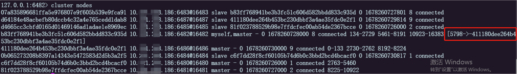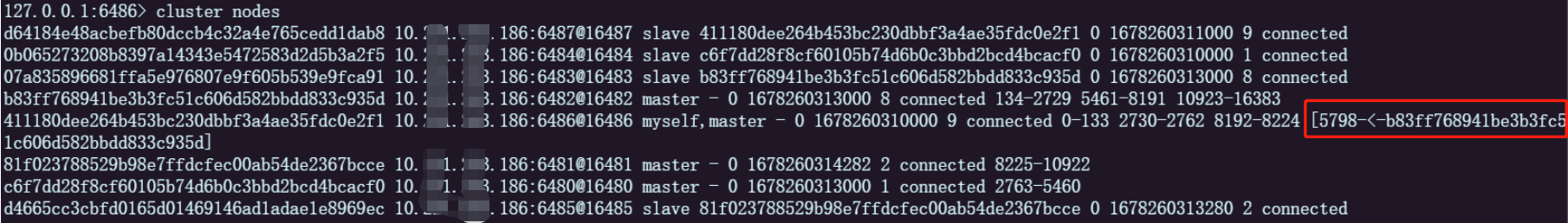 cluster setslot 5798 importing b83ff768941be3b3fc51c606d582bbdd833c935d //该id为6482的id