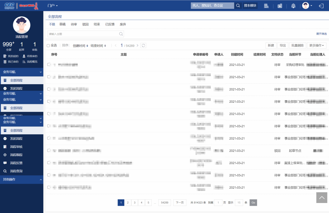 通过人力资源管理、财务管理、合同管理、运营管理、综合管理、研发流程、信息管理、采购管理等超过2322条流程模板的构建与规范,实现集团到各子公司的流程一体化管控,目前流程总数达80万+条。