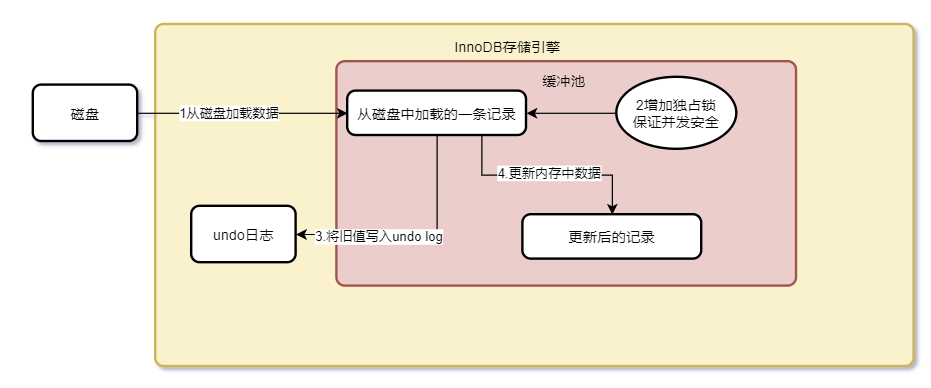 得要先从磁盘中将被更新数据的原始数据加载到缓冲池中(这⾥涉及到的innodb buffer暂时不讲)。