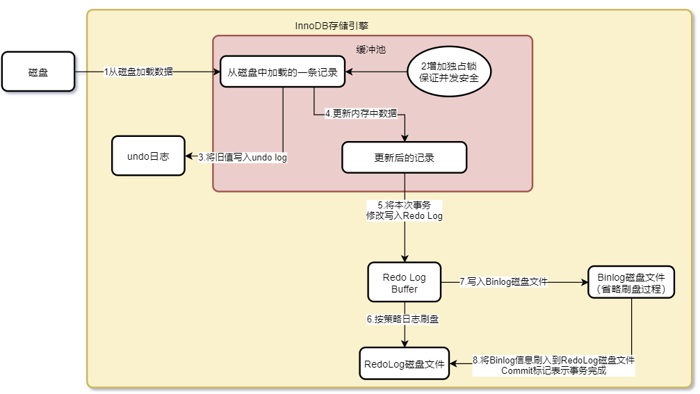 最后更新缓存⻚中的数据为最新的数据,⾄此就完成了在缓冲池中的执⾏流程,如下图所示:
