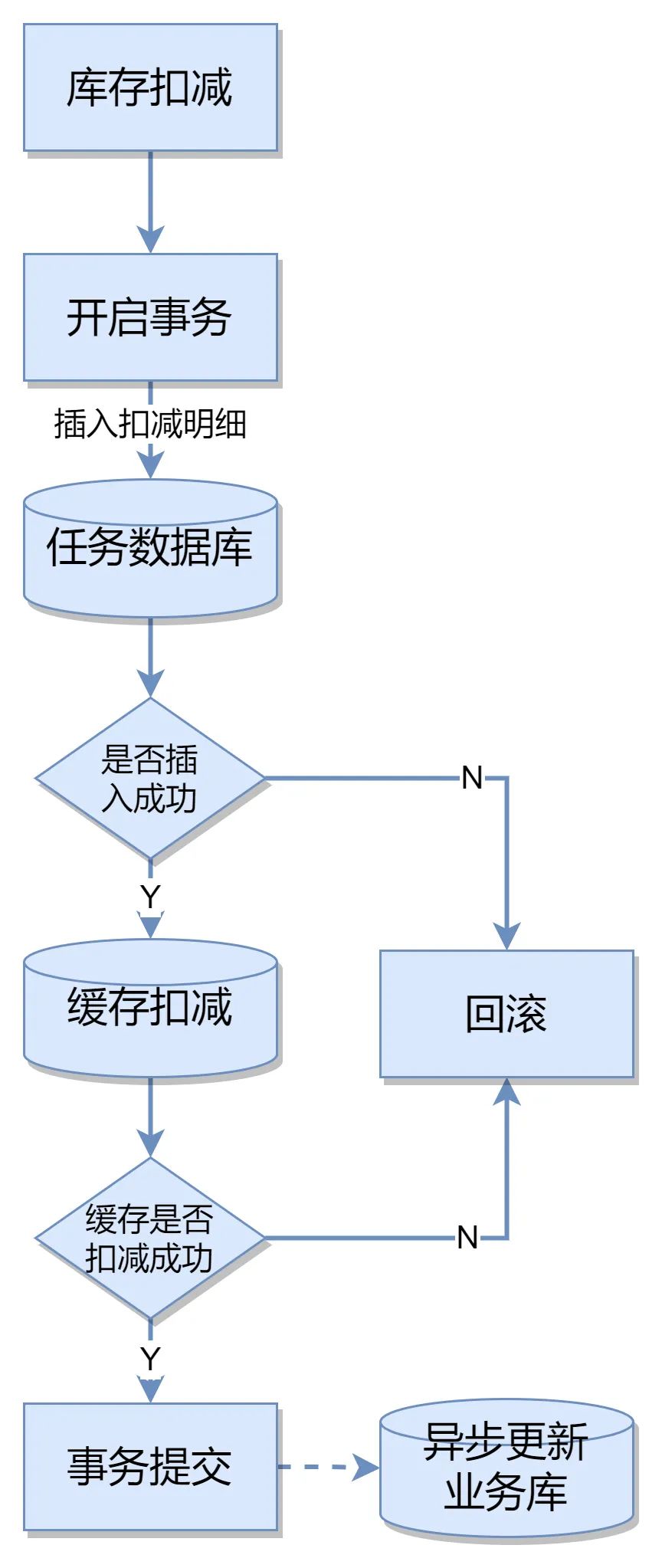 在redis中扣减库存虽然性能高,可以大大减轻数据库压力,但需要保证缓存数据能完整、正确的入库,以保证最终一致性。