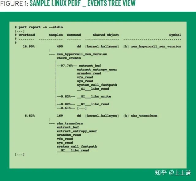 Linux perf_events还可以进一步压缩输出,通过合并相同的substack,使用树形结构汇总输出。对于树的每个分枝,都可以统计count或百分比。如图一所示:
